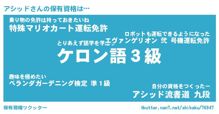 | ファンタジー風あだ名 | 『アシフェル』『エターナルアシッドー』 |