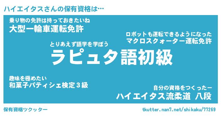 | 自動車の名前っぽいあだ名 | 『ハイティマ』『ハクア』『ハント』 |