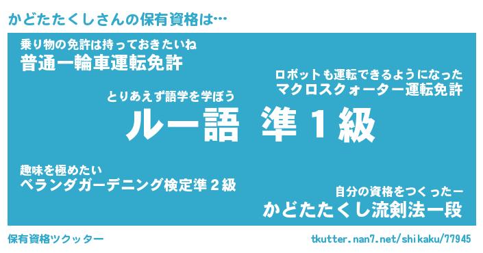 | 伝説のあだ名 | 『封印されし傭兵かどたたくし』 |