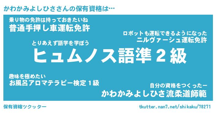 | 肩書あだ名 | 『かわかみよしひさ御曹司』 |