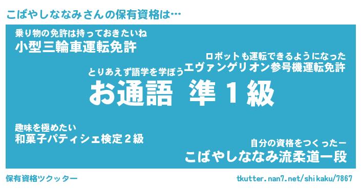 | 伝説のあだ名 | 『不死鳥の傭兵こばやしななみ』 |