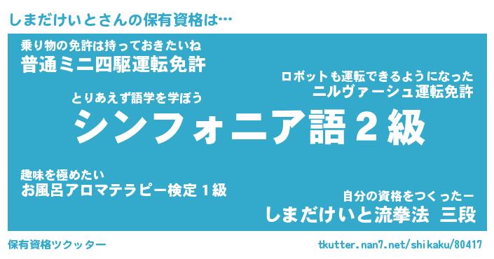 | 胡散臭い通販商品みたいなあだ名 | 『必ず成功するブレスレット…その名も「しまだけいと」』 |