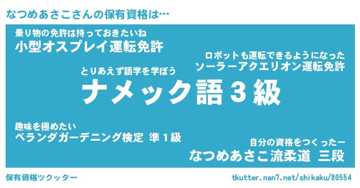 | ポケモン風あだ名 | 『ナツチュウ』『ナツメダネ』 |