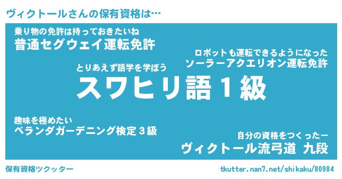 | ヒーロー風カッコイイあだ名 | 『スーパーヴィクトール』『魔戒騎士ヴィ』 |