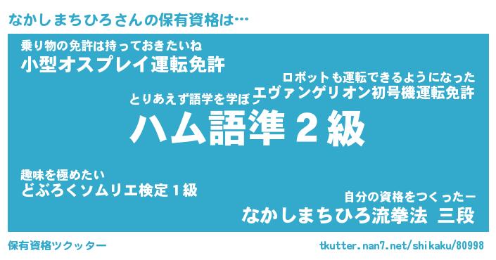 | 伝説のあだ名 | 『不死鳥のスナイパーなかしまちひろ』 |