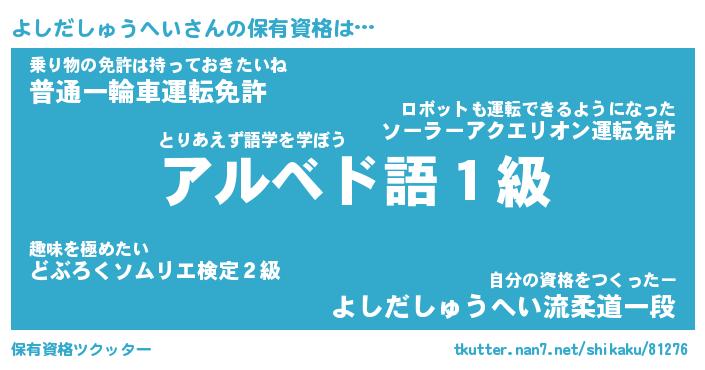 | ポケモン風あだ名 | 『ヨシチュウ』『ヨシダダネ』 |