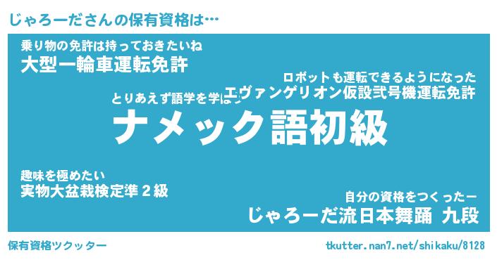 | 男性向けラノベタイトル風あだ名 | 『じゃろーだの憂鬱』 |