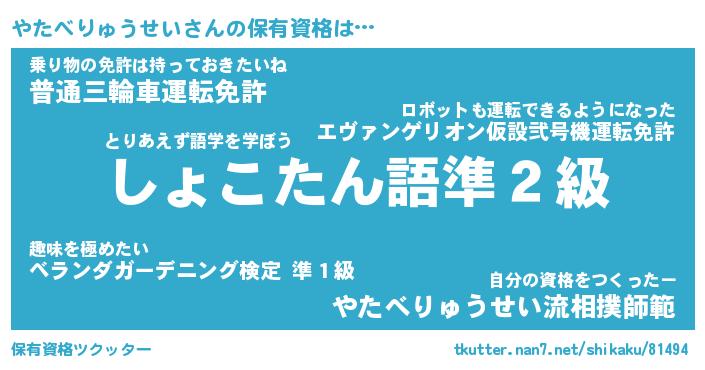 | 伝説のあだ名 | 『封印されしスナイパーやたべりゅうせい』 |