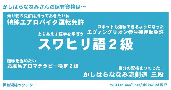 | 肩書あだ名 | 『かしはらななみ社長』 |