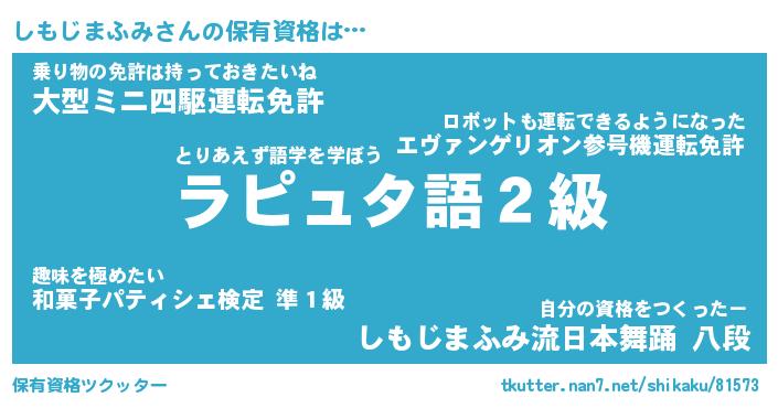 | 肩書あだ名 | 『しもじまふみCEO』『しもじまふみ班長』 |