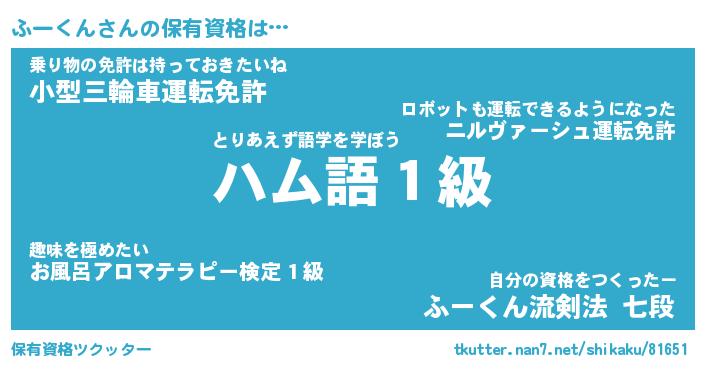 | ヒーロー風カッコイイあだ名 | 『スーパーフークン』『天弓騎士フー』 |