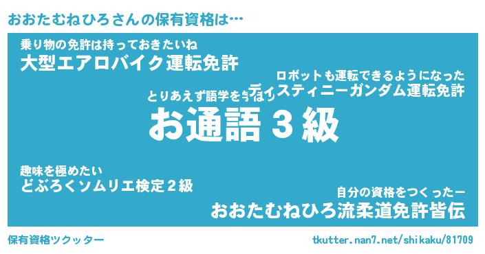 | 男性向けラノベタイトル風あだ名 | 『おおたむねひろの憂鬱』 |