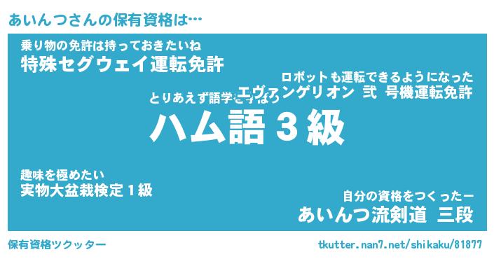 | 意味不明あだ名 | 『ペロリンあいんつ』『永久保存あいんつ』 |