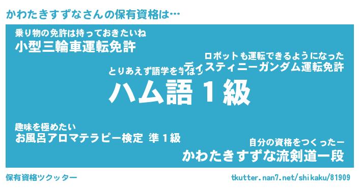 | 男性向けラノベタイトル風あだ名 | 『カワタキスズナアートオンライン』 |