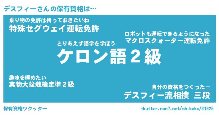 | ファンタジー風あだ名 | 『デスフェル』『エターナルデスフィーー』 |