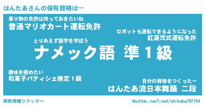 | 意味不明あだ名 | 『ペロリンはんたあ』『永久保存はんたあ』 |