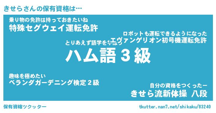 | 意味不明あだ名 | 『ペロリンきせら』『きせらフォーエバー』 |