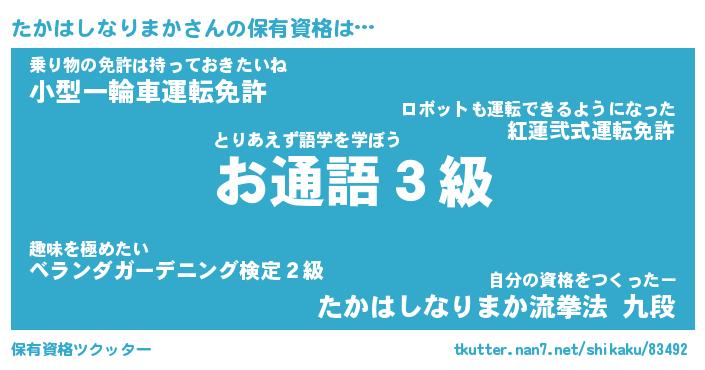 | 肩書あだ名 | 『たかはしなりまか店長』 |