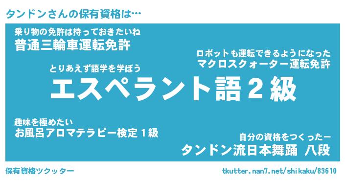 | ファンタジー風あだ名 | 『タンフェル』『エターナルタンドンー』 |