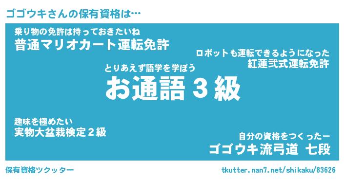 | 意味不明あだ名 | 『ペロリンゴゴウキ』『永久保存ゴゴウキ』 |