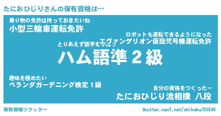 | ヒーロー風カッコイイあだ名 | 『スーパータニオヒジリ』『魔戒騎士タニ』 |