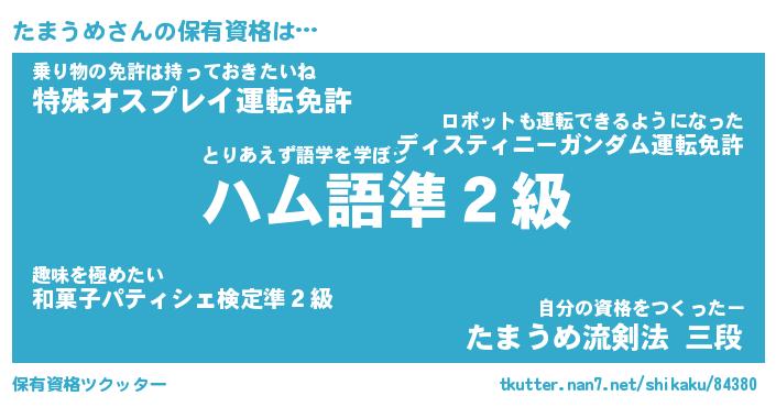 | ファンタジー風あだ名 | 『タマフェル』『エターナルタマウメー』 |