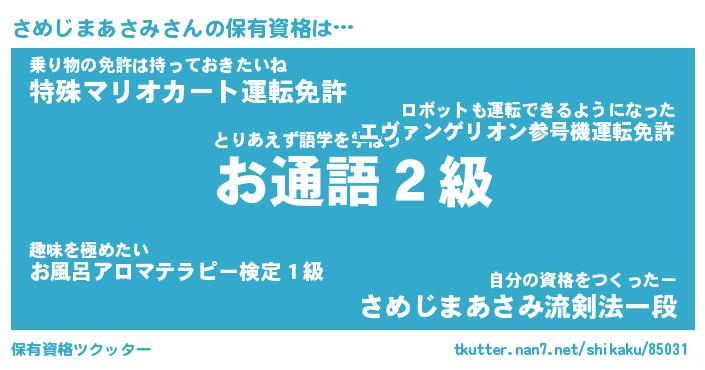 | 伝説のあだ名 | 『不死鳥の竜騎士さめじまあさみ』 |