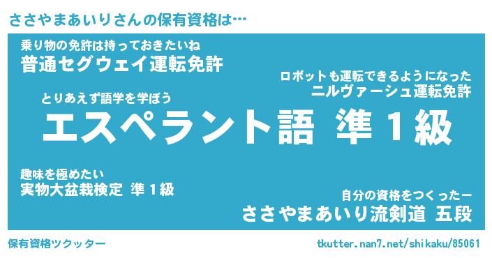 | 伝説のあだ名 | 『伝説の傭兵ささやまあいり』 |