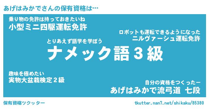 | 欧米人風あだ名 | 『マイケルあげはみかで』 |