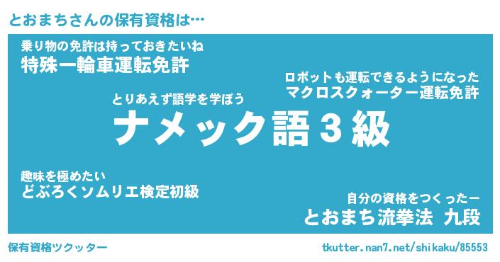 | ファンタジー風あだ名 | 『トオフェル』『エターナルトオマチー』 |