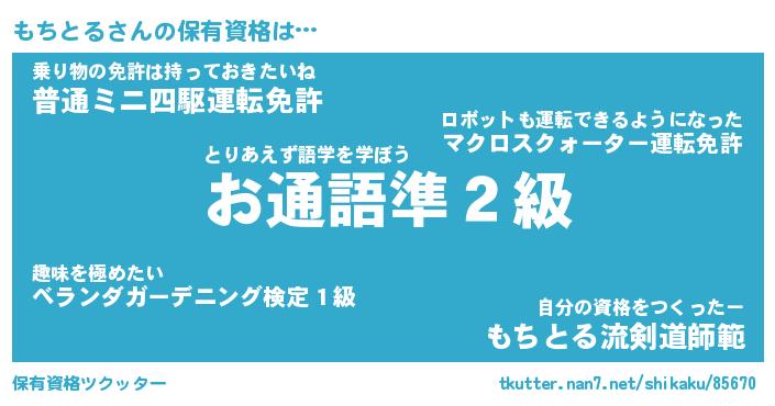 | ファンタジー風あだ名 | 『モチフェル』『エターナルモチトルー』 |