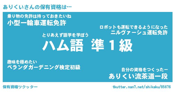 | 意味不明あだ名 | 『ペロリンありくい』『永久保存ありくい』 |