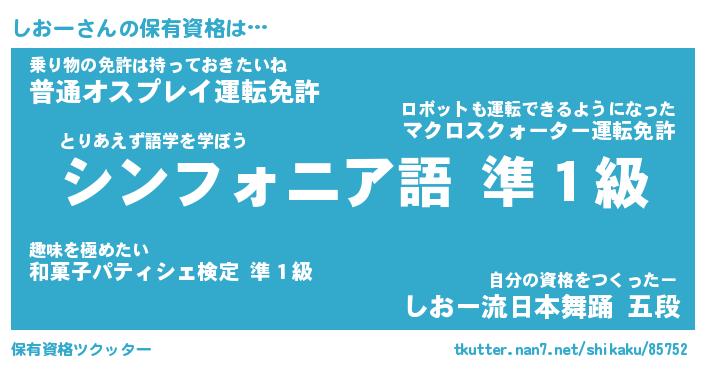 | ファンタジー風あだ名 | 『シオフェル』『エターナルシオーー』 |