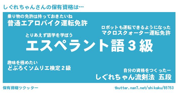 | 伝説のあだ名 | 『伝説の傭兵しぐれちゃん』 |