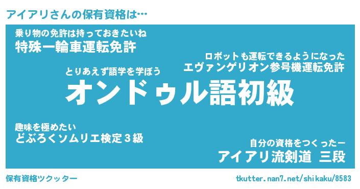 | 意味不明あだ名 | 『ペロリンアイアリ』『永久保存アイアリ』 |