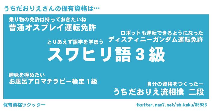 | 伝説のあだ名 | 『伝説の傭兵うちだおりえ』 |