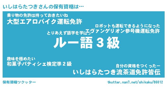 | 伝説のあだ名 | 『封印されし傭兵いしはらたつき』 |