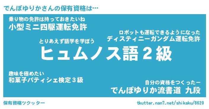 | 伝説のあだ名 | 『封印されし竜騎士でんぽゆりか』 |