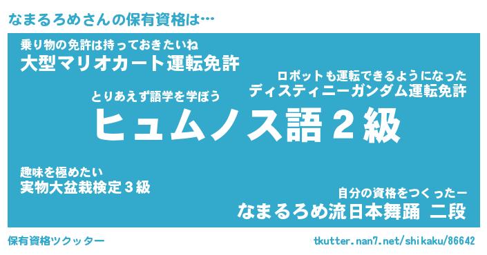 | ヒーロー風カッコイイあだ名 | 『スーパーナマルロメ』『魔戒騎士ナマ』 |