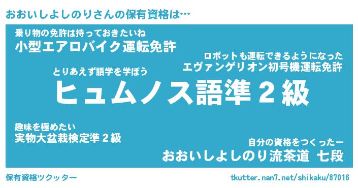 | ツイッター | おおいしよしのりさんのツイッターID『namakemono_kun』 |