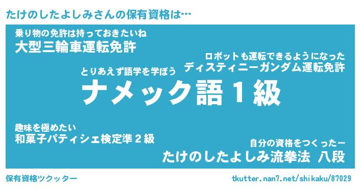 | ヒーロー風カッコイイあだ名 | 『スーパータケノシタヨシミ』 |