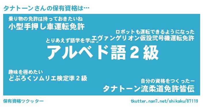| ヒーロー風カッコイイあだ名 | 『スーパータナトーン』『天弓騎士タナ』 |