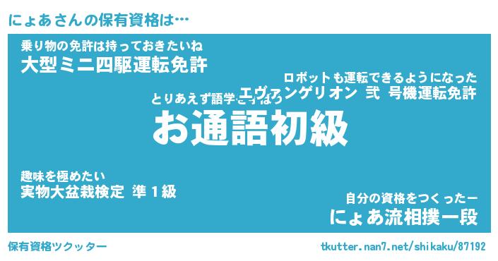 | 伝説のあだ名 | 『伝説のスナイパーにょあ』 |
