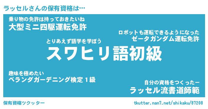 | 意味不明あだ名 | 『ペロリンラッセル』『永久保存ラッセル』 |