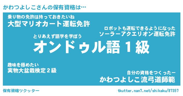 | 肩書あだ名 | 『かわつよしこ社長』『かわつよしこ班長』 |