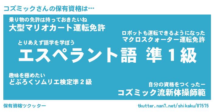 | ファンタジー風あだ名 | 『コズフェル』『エターナルコズミックー』 |