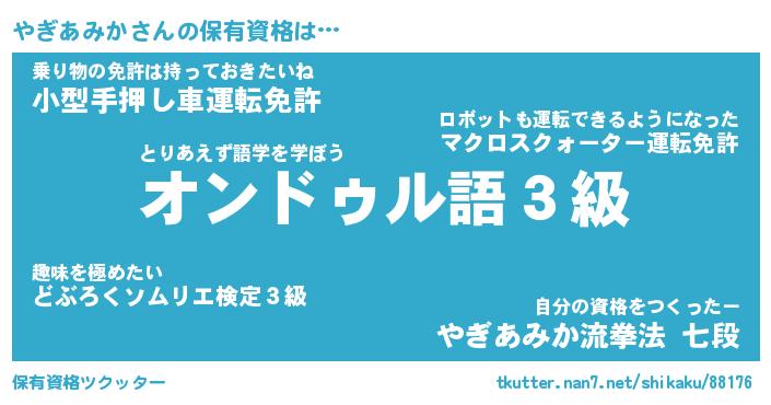 やぎあみかさんの保有資格は… とりあえず語学を学ぼう『オンドゥル語3級』乗り物の免許は持っておきたいね『小型手押し車運転免許』自分の資格をつくったー『やぎあみか流拳法 七段』 ツクッター #保有資格ツクッター http://tkutter.nan7.net/shikaku/88176/