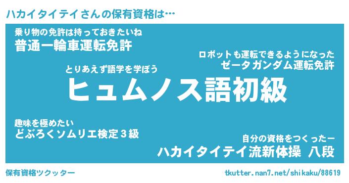| 欧米人風あだ名 | 『マイケルハカイタイテイ』 |