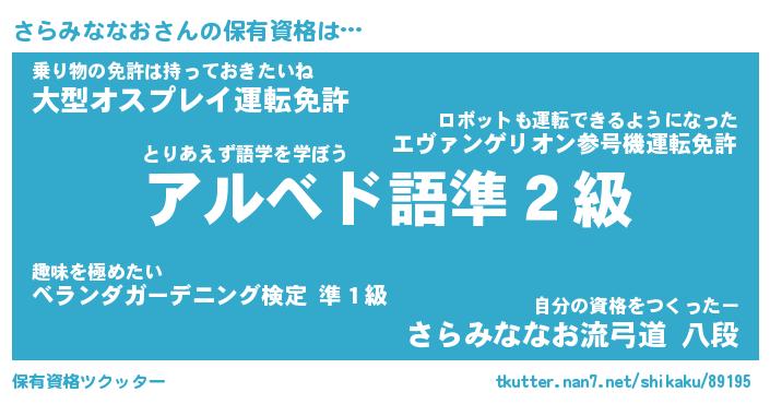 | 伝説のあだ名 | 『不死鳥のスナイパーさらみななお』 |