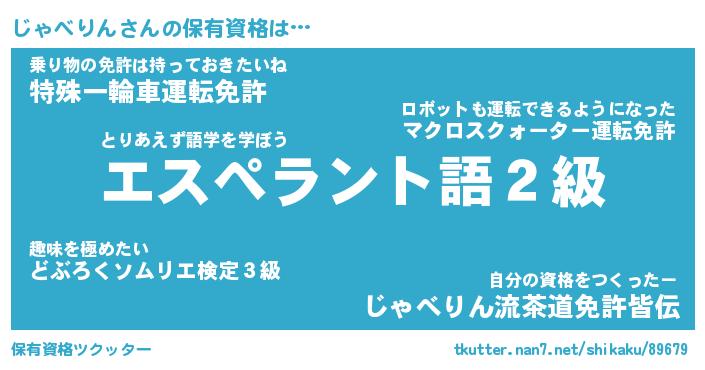 | 男性向けラノベタイトル風あだ名 | 『じゃべりんの憂鬱』 |